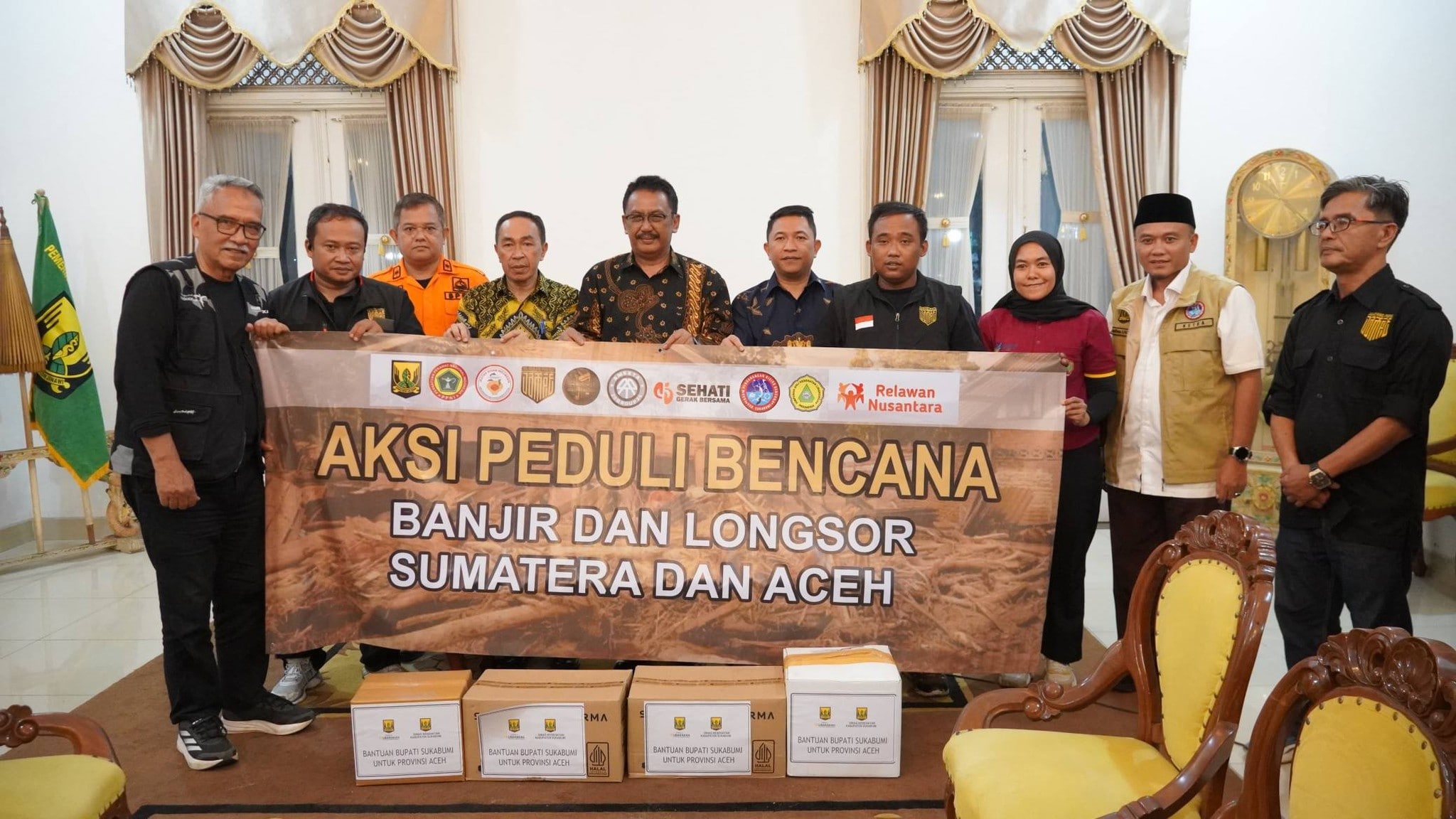 BERITAUSUKABUMI.COM-Pemerintah Kabupaten Sukabumi menyalurkan bantuan kemanusiaan untuk korban bencana di Aceh melalui Relawan Jampang Peduli (Jampe).